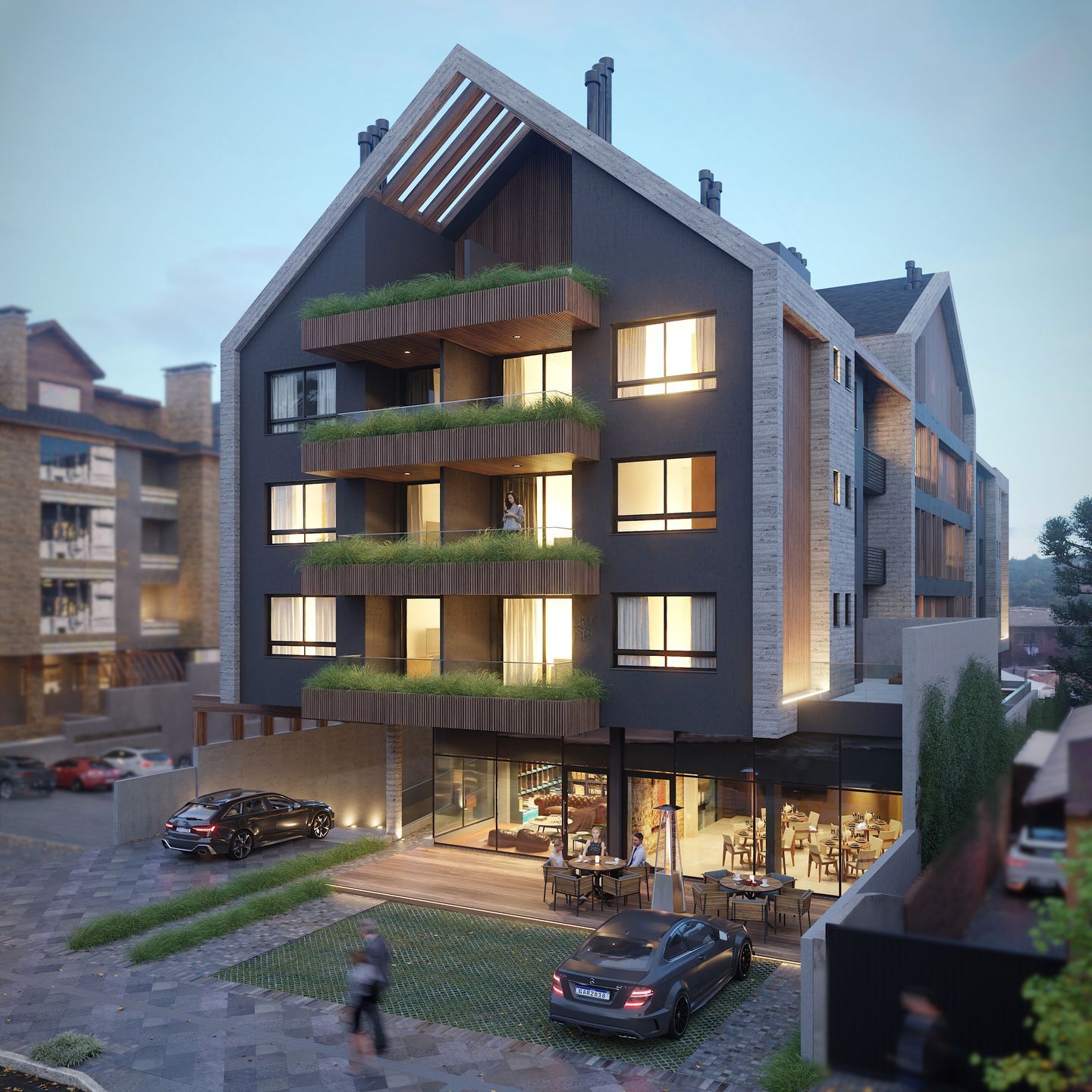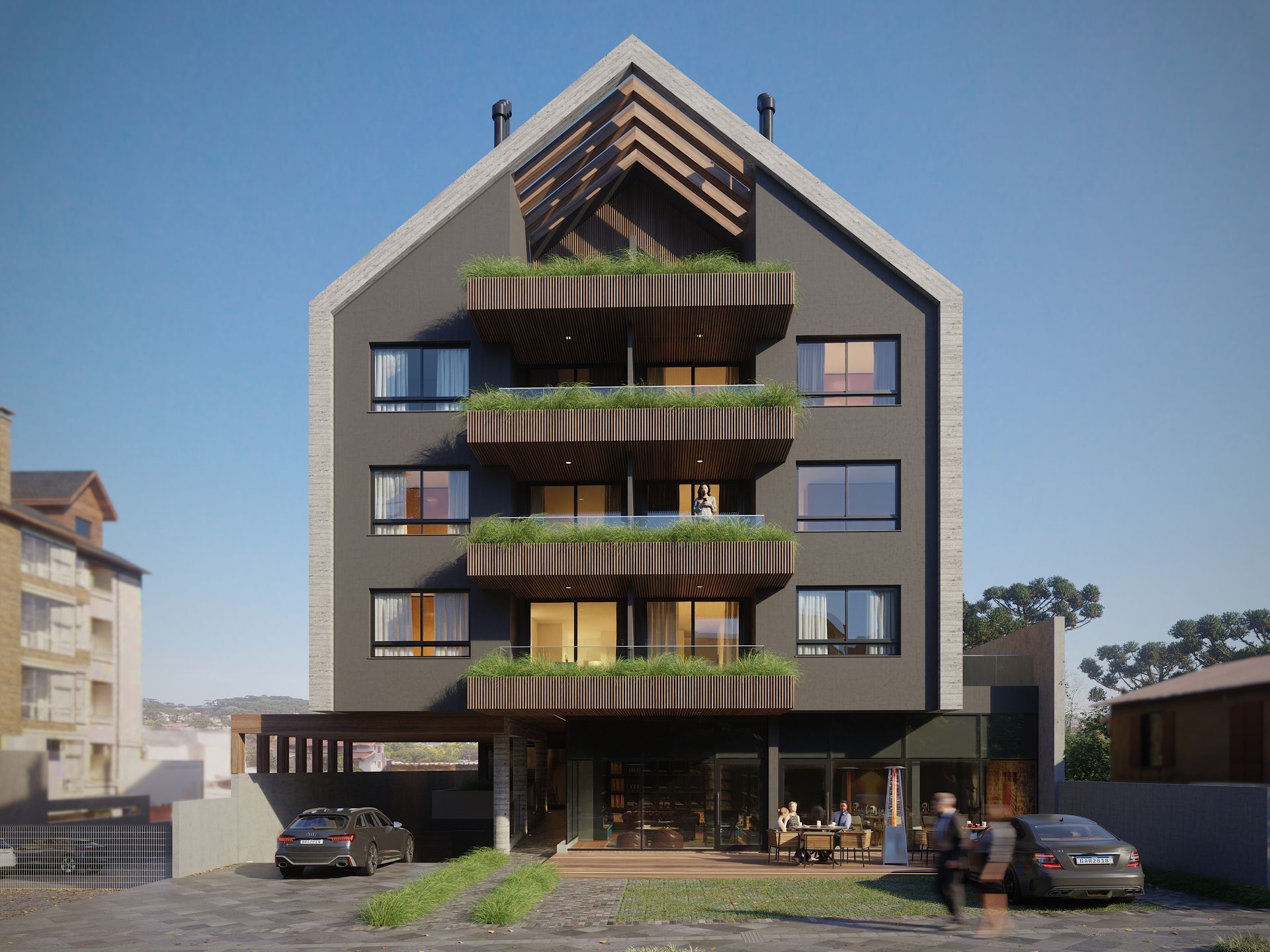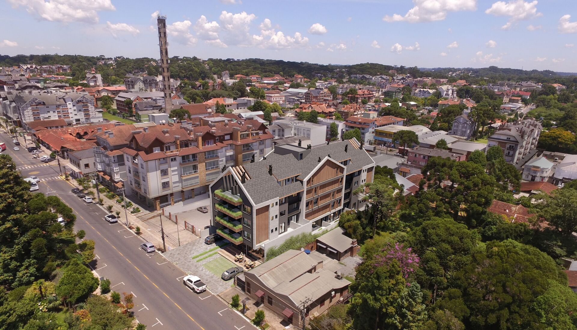 Residencial localizado em Canela/RS, contará com opções de vinte e um apartamentos de dois dormitórios, sendo uma suíte, sala de estar/jantar, cozinha/lavanderia e banheiro social. Quatro apartamentos de dois dormitórios, sendo uma suíte, sala de estar/jantar, cozinha/lavanderia, banheiro social e terraço privativo. Três apartamentos de um dormitório com sala de estar/jantar, cozinha/lavanderia e banho social. Três apartamentos de três dormitórios, sendo uma suíte e duas suítes americanas, com sala de estar/jantar, cozinha/lavanderia e lavabo. Um Apartamento com suítes, sala de estar/jantar, cozinha/lavanderia e lavabo.